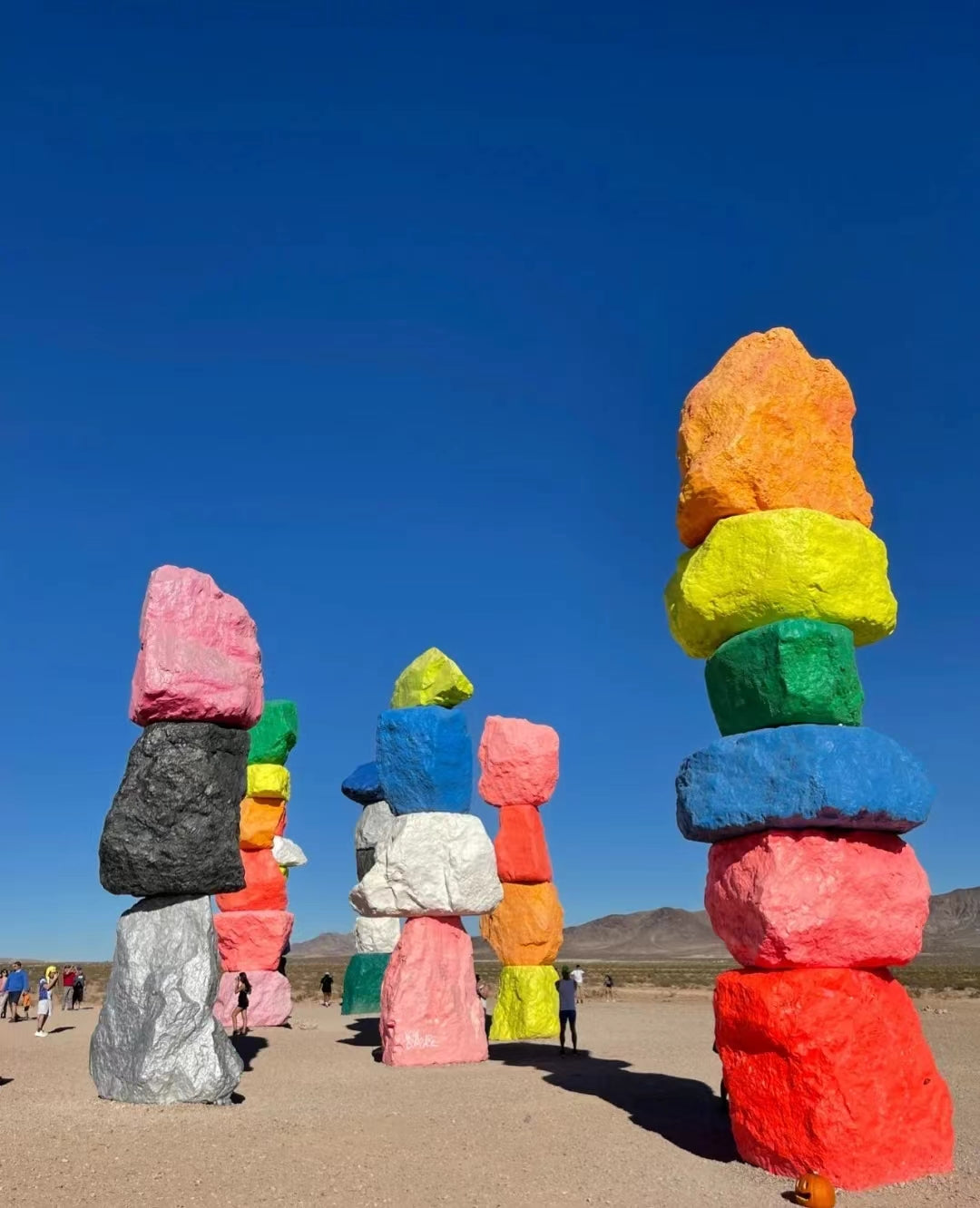 七彩巨石阵 Seven Magic Mountains 一望无垠的内华达州拉斯韦加斯远郊的沙漠之中,伫立着7座用彩色石头堆栈起来的柱子,合来就叫做七彩巨石阵(Seven Magic Mountains)。这七座9米高的彩虹般的巨石阵,屹立在荒漠中,为沙漠单一的景色中注入了几分活泼的色彩。这里是网红打卡拍照一定不能错过的地方。